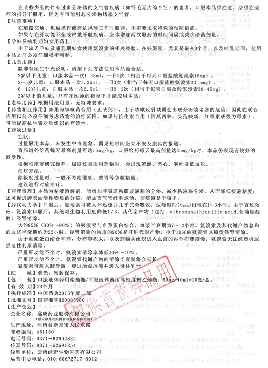 2、每支10ml,含氨溴索60mg:浓度更高疗效更好。
